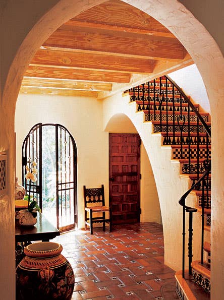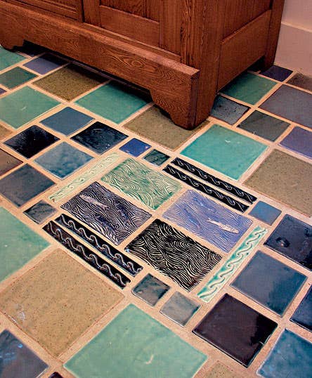 Wood is not the only material appropriate for traditional floors. Encaustic and clay tiles were used in sunrooms and entryways; ceramic tile in kitchens and baths. In the early 20th century, floral and geometric Hispano–Moresque accent tiles were popular in California and the Southwest, and in any house with a Spanish or Mediterranean style leanings.